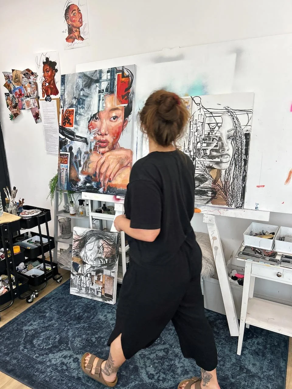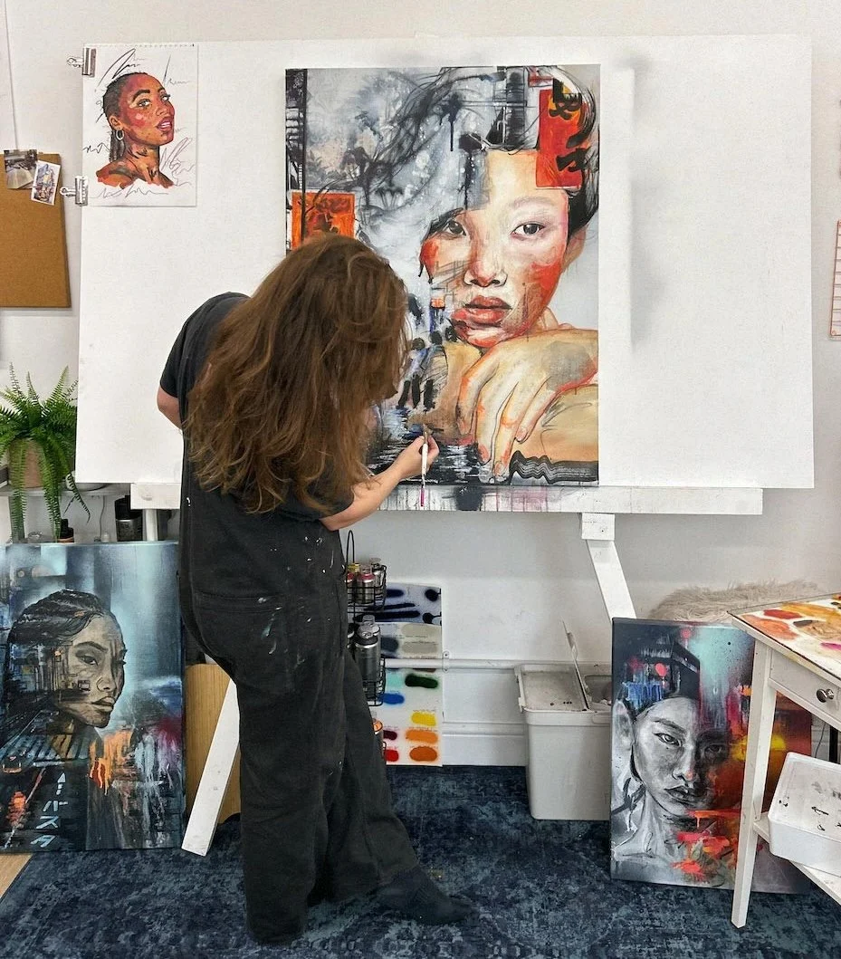 Her work blends expressive portraiture, figurative studies, and urban landscapes to capture the emotional imprint of a moment - the way a city lingers in memory, the way a woman carries both softness and strength, the way beauty and chaos can exist at the same time.
